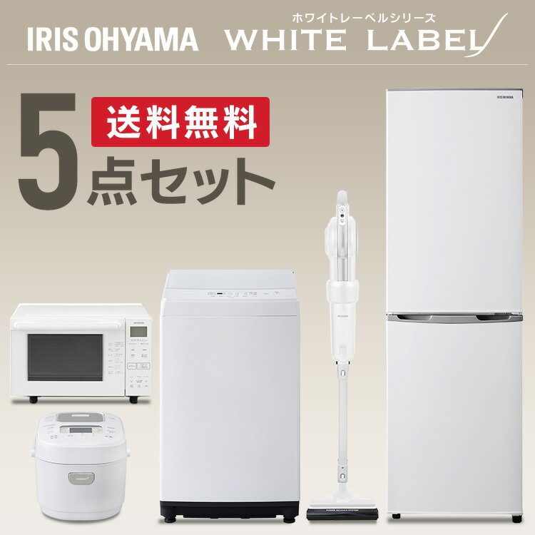 ■セット内容・ノンフロン冷凍冷蔵庫162L IRSE-H16A・全自動洗濯機 6kg IAW-T603・オーブンレンジ 18L WLMO-F1801-W・IHジャー炊飯器 3合 WLRC-IK30-W・キャニスティッククリーナー IC-CSP5≪ノンフロン冷凍冷蔵庫162L IRSE-H16A≫●種類:ノンフロン冷凍冷蔵庫●冷媒:R600a●ドア数:2●商品サイズ(cm):幅約47.4×奥行約53.5×高さ約149.6●質量:約40kg●定格電圧(定格周波数):AC100V(50Hz/60Hz)●定格内容積※1:162L(冷蔵室:100L/冷凍庫:62L)●冷凍室の性能※2記号:フォースター冷凍負荷温度(食品温度):-18℃以下冷凍食品の保存期間の目安:約3か月●定格入力(50Hz/60Hz):68/74W●電熱装置の入力:6W●ドア開閉方向:右●電源コード長さ:1.8m※1定格内容積は、日本工業規格(JISC9801:2015)にもとづき、食品収納スペースと冷気循環スペースを含んでいます。